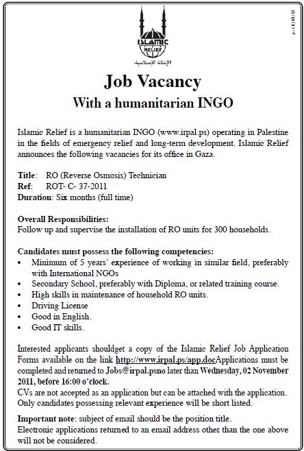 Islamic Relief: Technician