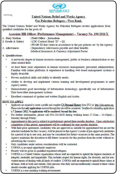 UNRWA: Associate HR Officer