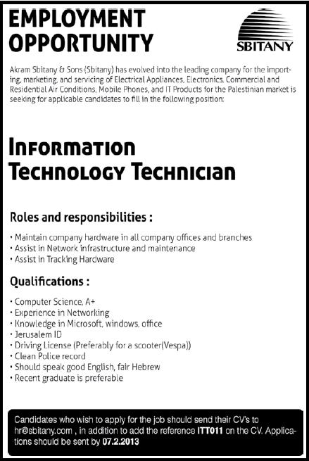 Sbitany: Information Technology Technician