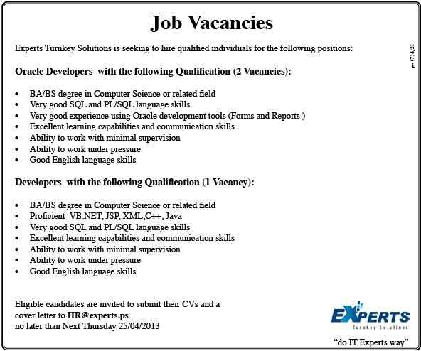 Experts Turnkey Solutions: Vacancies