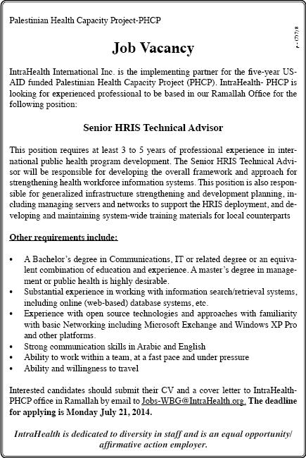 Palestinian Health Capacity Project-PHCP: Senior HRIS Technical Advisor