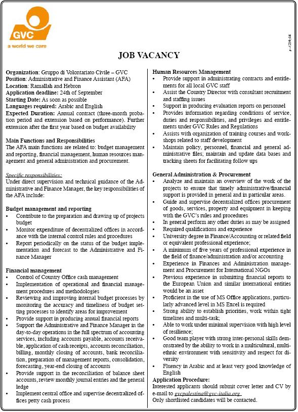 Gruppo di Volontariato Civile: Administrative and Finance Assistant