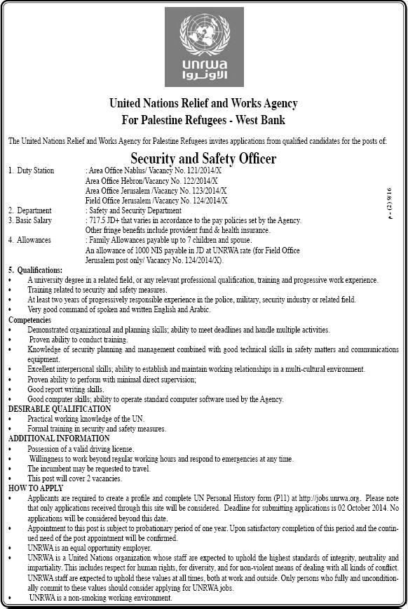 UNRWA: Safety and Security Officer