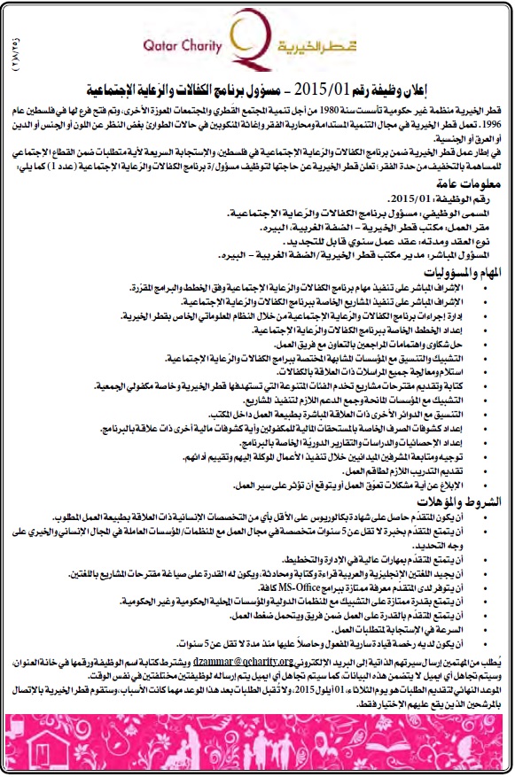 قطر الخيرية: مسؤول برنامج الكفلات والرعاية الاجتماعية
