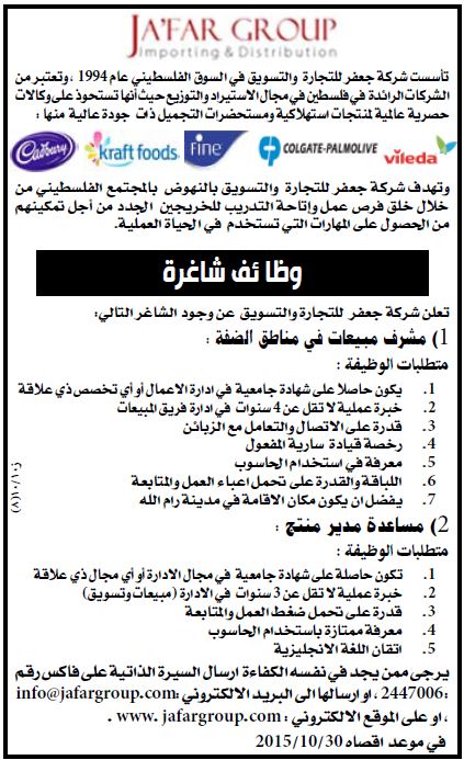 شركة جعفر للتجارة والتسويق: وظائف شاغرة