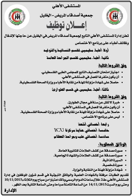 جمعية أصدقاء المريض: وظائف شاغرة - الخليل