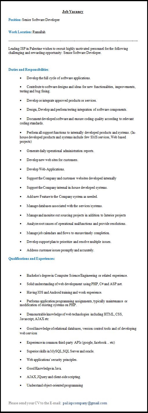 Senior Software Developer - Ramallah