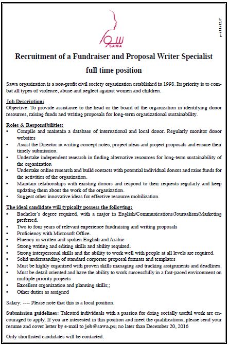 Sawa Organization: Fundraiser and Proposal Writer Specialist