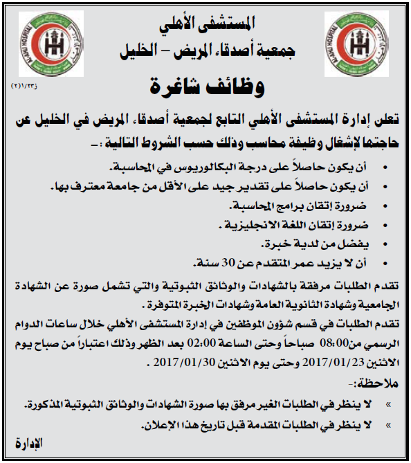 المستشفى الأهلي - جمعية أصدقاء المريض: محاسب