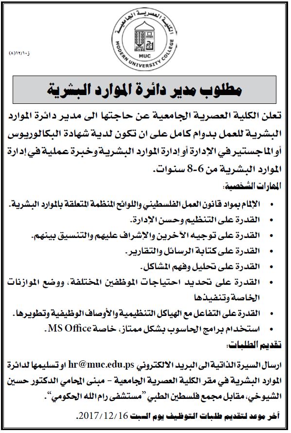 الكلية العصرية الجامعية: مدير دائرة الموارد البشرية