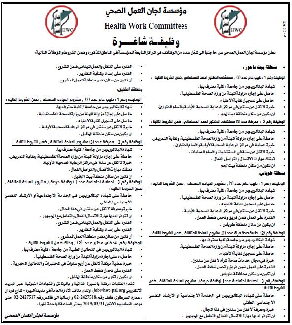مؤسسة لجان العمل الصحي: وظائف شاغرة