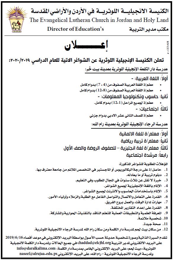 الكنيسة الانجيلية اللوثرية: وظائف شاغرة