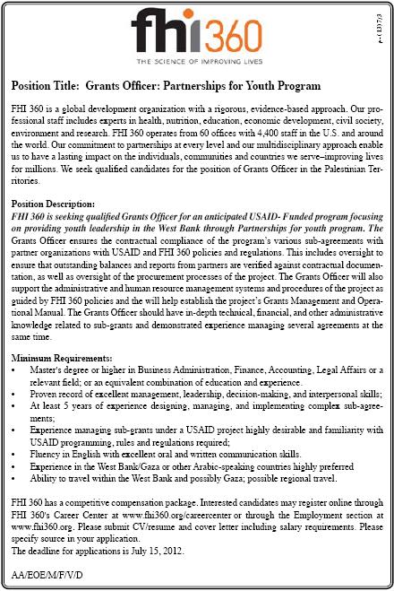 FHI 360: Grant Officer