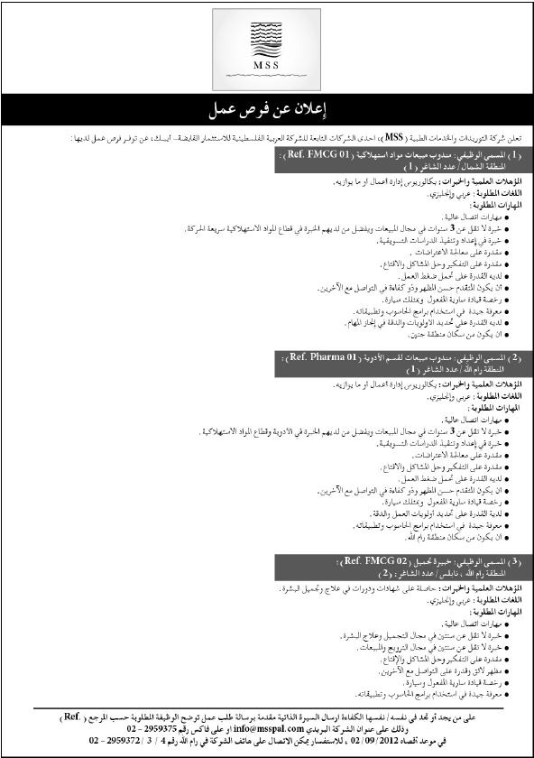 شركة التوريدات والخدمات الطبية: وظائف شاغرة