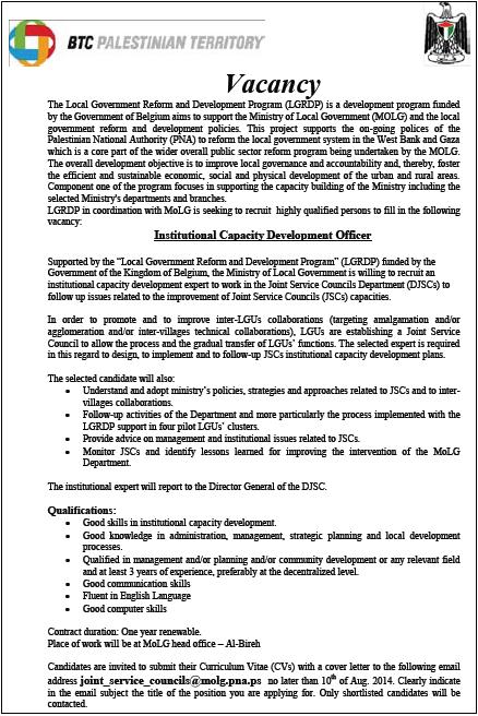 BTC: Institutional Capacity Development Officer