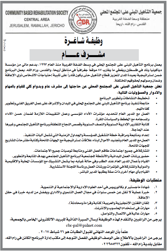 جمعية التأهيل المبني على المجتمع المحلي: مشرف عام