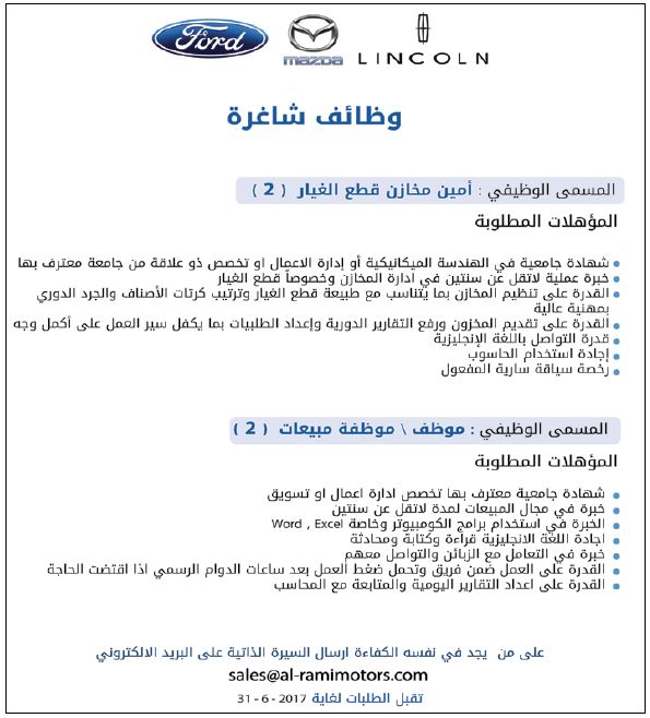 الرامي موتورز: وظائف شاغرة