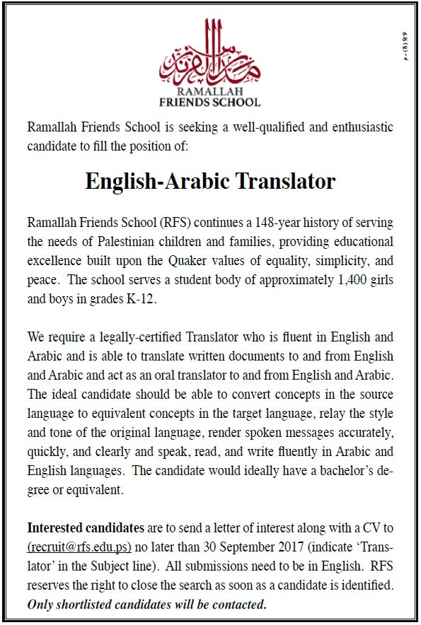 Ramallah Friends School: English - Arabic Translator