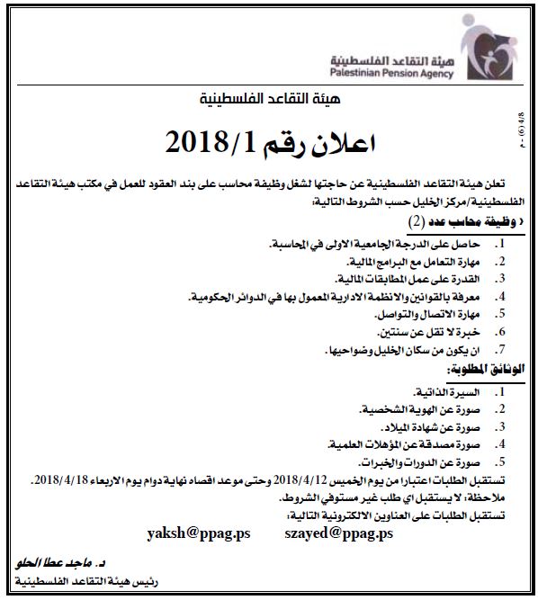 هيئة التقاعد الفلسطيني: محاسب عدد 2